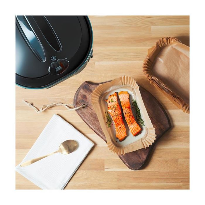 Descriptif complémentaire | Lot de 50 feuilles de papier cuisson rectangulaires 20.5x14 cm Idéal pour cuisson Airfryer |