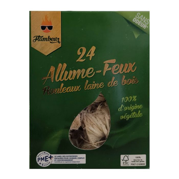 24 allume-feux rouleux laine de bois FLAMBEUR