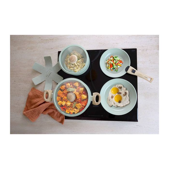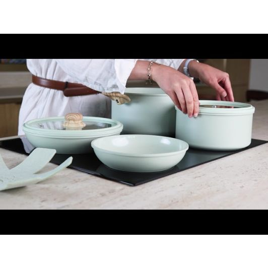 | Caractéristiques complémentaires | Batterie de cuisson 8 pièces composée de : - Poêle 20 et 24 cm - Casserole 20 cm - Faitout 24 cm - Couvercles verre joints silicone 20 et 24 cm - Poignée amovible - Feutrine de protection |