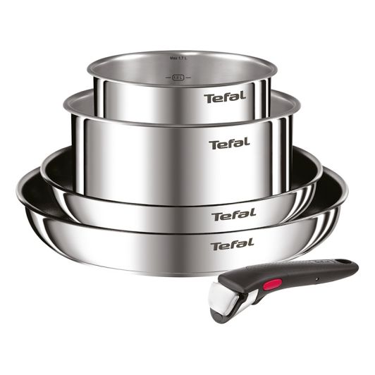 | Caractéristiques complémentaires | Tefal Ingenio Emotion Batterie de cuisson 5 pièces INGENIO C’EST BIEN PLUS QU’UNE POÊLE : vous pourrez cuire sur la plaque de cuisson, gratiner vos recettes au four et conserver les restes au frigo CONTENU : Poêles 24/28 cm revêtues + Casseroles 16/20 cm inox + 1 poignée amovible POIGNEE AMOVIBLE ULTRA SECURISEE : La poignée amovible sûre et brevetée bénéficie d’une garantie de 10 ans*** NE PASSE PAS AU LAVE VAISSELLE GAIN DE PLACE : grâce à son empilabilité, Ingenio vous fait gagner de la place dans vos placards REVETEMENT ANTIADHESIF SÛR ET RESISTANT : Le revêtement Titanium X2 dure deux fois plus longtemps que le revêtement standard antiadhésif de Tefal, pour une cuisson durable et un nettoyage facile. Antiadhésif sûr, sans PFOA, ni plomb, ni cadmium**** FACILE A NETTOYER à l’intérieur comme à l’extérieur : Lavage à la main facile et compatible au lave vaisselle INDICATEUR DE DEMARRAGE DE CUISSON : L’innovation Thermo-Signal™ change de couleur quand vous pouvez démarrer la cuisson, pour une saisie parfaite à chaque usage ACIER INOXYDABLE GARANTI 5 ANS : Garantissant des performances et une fiabilité durables, découvrez un produit de qualité supérieure avec un design robuste, conçu pour durer. TOUS FEUX DONT INDUCTION : Compatible gaz, électrique, vitrocéramique et induction INDUCTION INTEGRALE : Une base épaisse de diffusion de la chaleur pour des repas savoureux et des performances durables. |