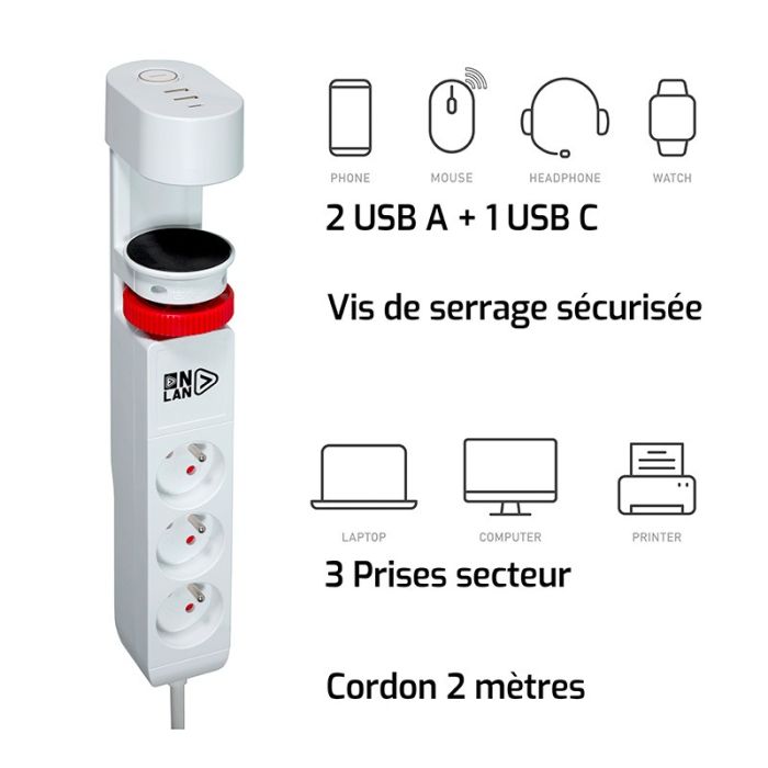 Elle permet de rassembler différents appareils et de les brancher sur une seule prise électrique. Elle s'avère indispensable dans un bureau, sur un plan de travail de cuisine ou encore dans un salon. Autant d'espaces qui réunissent plusieurs équipements au même endroit (écran de PC, unité centrale et imprimante pour le bureau par exemple).