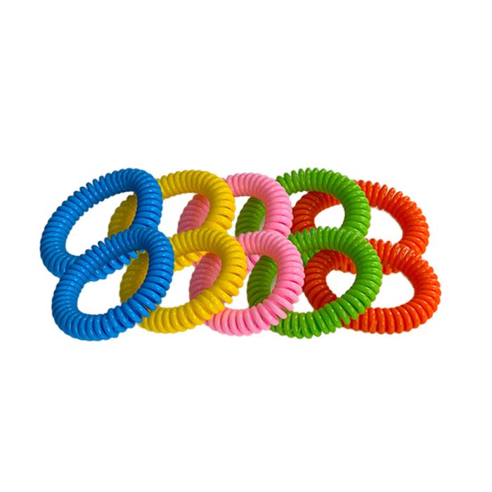 | Caractéristiques complémentaires | Lot de 10 bracelets spirale citronnelle 10 BRACELETS CITRONNELLE EFFICACITE REDOUTABLE REPOUSSE LES MOUSTIQUES - EFFICACITÉ LONGUE DURÉE - RÉSISTE A L’EAU - IDÉAL POUR LES VACANCES LE CAMPING LA PÊCHE ET AUTRES ACTIVITÉS EXTÉRIEURES - UTILISATION INTÉRIEUR / EXTÉRIEUR - COLORIS ASSORTIS |