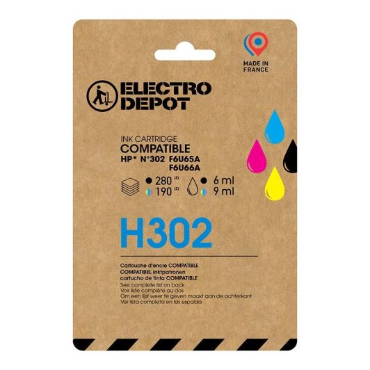 Cartouche d'encre ELECTRO DEPOT compatible HP H 302 noir et couleurs