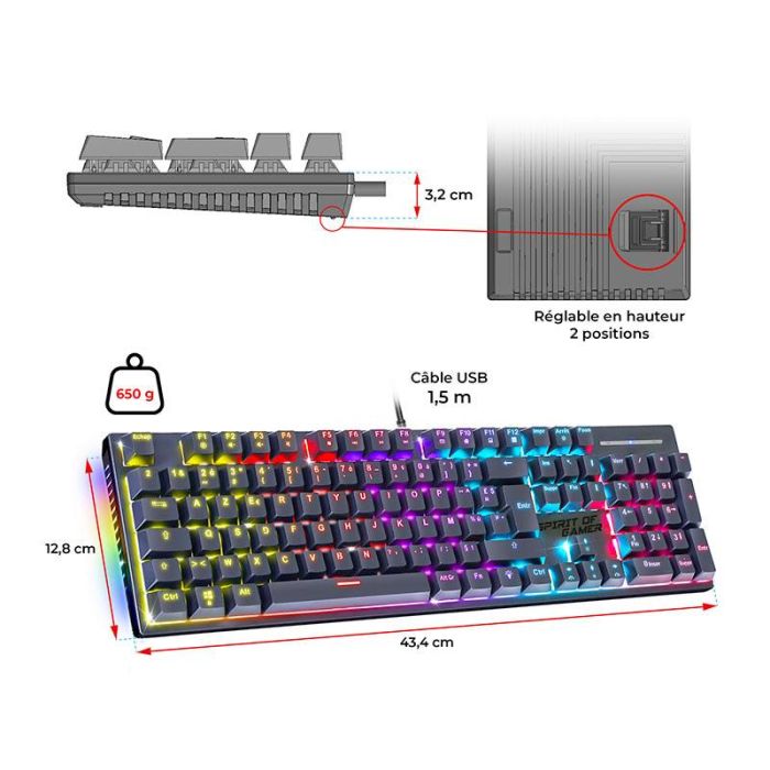 Clavier mécanique SPIRIT OF GAMER XPERT-K250 – Switchs rouges, RGB, anti-ghosting 26KRO, hot-swappable