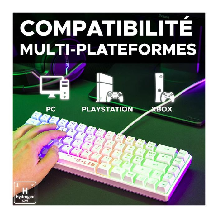 Clavier gamer THE G-LAB TKL 60% Hydrogen blanc