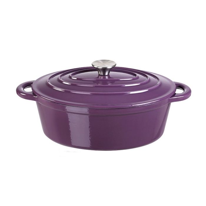 | Caractéristiques complémentaires | Cocotte ovale, fonte d'acier, contenance 4,3LIntérieur émaillé coloris crèmeCouvercle avec picots permettant d'assurer un "arrosage" continu et homogène des aliments pendant la cuisson.Dimensions intérieures du produit : 30x23x11 cm |