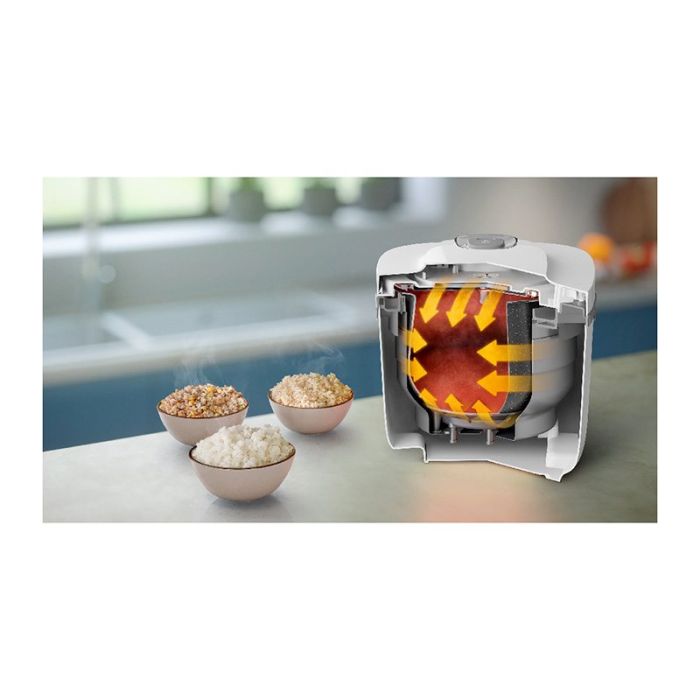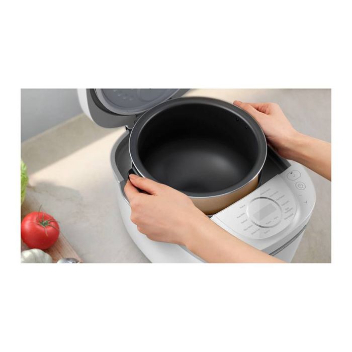 Informations complémentaires | Un riz blanc et moelleux jusqu'à 24 heures -La promesse d'un riz toujours moelleux -Une cuisson puissante et uniforme grâce à une cuve sphérique optimisée Système Smart 3D Heating, pour une excellente pénétration de la chaleur -Cuve épaisse 5 couches premium pour une meilleure répartition de la chaleur Revêtement céramique de haute qualité, pour cuisiner en toute tranquillité -Poignées pratiques, pour un transport facilité -Grande capacité de 5l, soit jusqu'à 10 tasses de riz -16 menus optimisés et maintien au chaud jusqu'à 24 heures -Le revêtement céramique est non toxique, antiadhésif et extrêmement résistant pour éviter les rayures. |