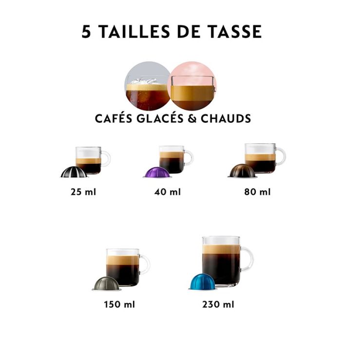 | Descriptif long (Websites) | - 5 tailles de tasse, de l'espresso au Mug - Livrées avec un assortiment de 7 capsules - Technologie d'extraction par centrifusion - Simplicité : un seul bouton pour toutes les tailles de tasse Grâce au code-barres présent sur les capsules, son système de reconnaissance optique ajuste automatiquement les paramètres d'extraction de la machine. |