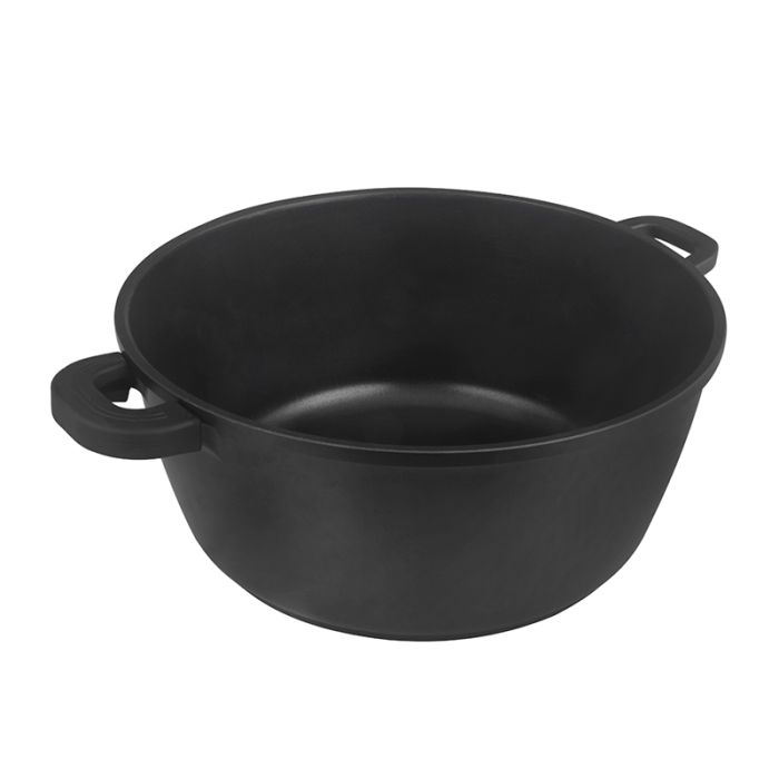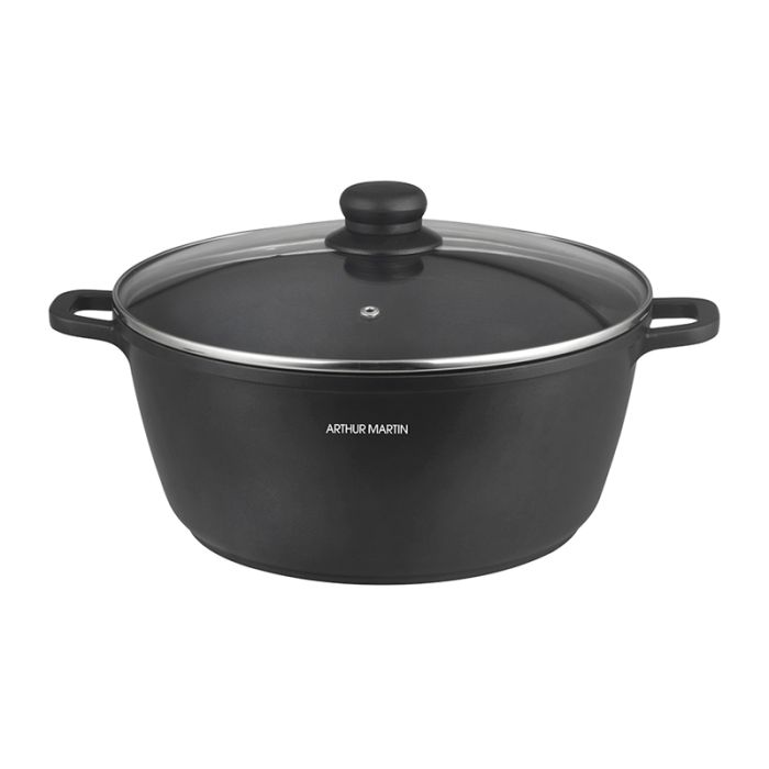 | Caractéristiques complémentaires | Fonte d'aluminium Revêtement antiadhérent Diamètre 44 cm - Litrage +/- 22 litres Couvercle verre Utilisation sur tous types de feux y compris l'induction et four |