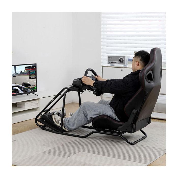 Descriptif complémentaire | Plongez au cœur de l'action avec le siège de simulation automobile AMS-RACING-PRO, conçu pour une immersion totale. Son assise baquet ergonomique avec surpiqûres rouges et son châssis en acier robuste offrent stabilité et confort durant vos sessions les plus intenses. Compatible avec les volants et pédaliers les plus populaires, il est l’équipement idéal pour les passionnés de course. |