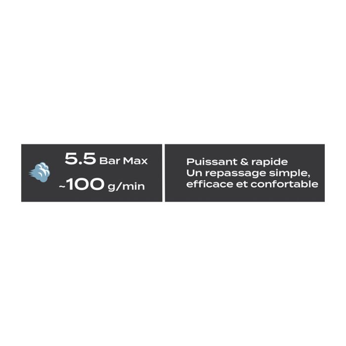 Jusqu'à 180g/min pour eliminer les faux plis les plus tenaces.5,5 bar