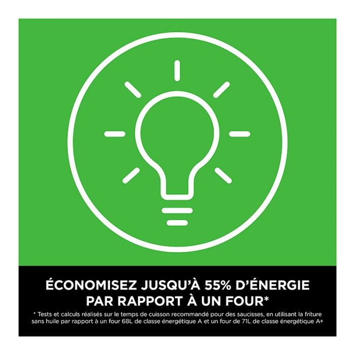 | Caractéristiques complémentaires | Préparez des repas rapides en utilisant très peu voire pas d’huile 4 modes de cuisson : Frire sans huile (Air Fry), rôtir, réchauffer, déshydrater Facile à nettoyer avec ses accessoires lavables au lave-vaisselle Inclus : 1 tiroir antiadhésif, 1 plaque de cuisson antiadhésive |