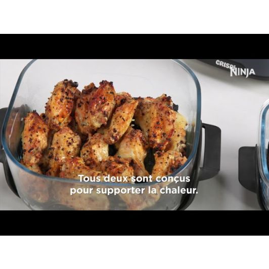 | Informations complémentaires | Le système de cuisson portatif Ninja Crisp est un appareil compact qui offre la puissance d’une friteuse à air chaud pleine grandeur de 1 700 W dans un format portatif. Il inclut un petit récipient TempWar de 6 tasses (1,4 l) et un plus grand de 4 (3,8 l). Pour préparer en 7 minutes des repas rapides en portions individuelles, partager des collations croustillantes sur le pouce ou servir de nombreux convives, le système Ninja Crispi vous facilite la tâche. Le verre borosilicaté solide résiste aux variations extrêmes de température; idéal pour passer directement d’aliments surgelés à croustillants. Le nettoyage est simple : tous les accessoires vont au lave-vaisselle et sont conçus pour être emboîtés pour faciliter le rangement. • SYSTÈME TOUT-EN-UN : Inclut le module Ninja Crispi PowerPod, des récipients en verre TempWare de 4 pte (3,8 l) et de 6 tasses (1,4 l), et 2 couvercles de rangement. • MODULE CRISPI POWERPOD : La puissance d’une friteuse à air chaud pleine grandeur dans la paume de votre main. • RÉCIPIENTS POUR GRANDE ET PETITE QUANTITÉ : Le récipient de 6 tasses (1,4 l) permet de cuire un repas individuel en 7 minutes, tandis que le récipient de 4 pte (3,8 l) permet de cuire un poulet de 4 lb (1,8 kg) et des légumes. • RÉSISTANT AUX CHOCS THERMIQUES : La verrerie borosilicate peut passer de congelée à croustillante en quelques minutes. • FONCTIONNALITÉ 4-EN-1 : Max Crisp (Crousti Max), Bake (cuire), Air Fry (cuisson croustillante) et Recrisp (recroustiller) • PROTECTION FIXE CONTRE LA CHALEUR : Les pieds résistants à la chaleur et fixés de façon permanente peuvent être placés en toute sécurité sur le granite, le stratifié, le quartz, les étals, le marbre et plus encore. |
