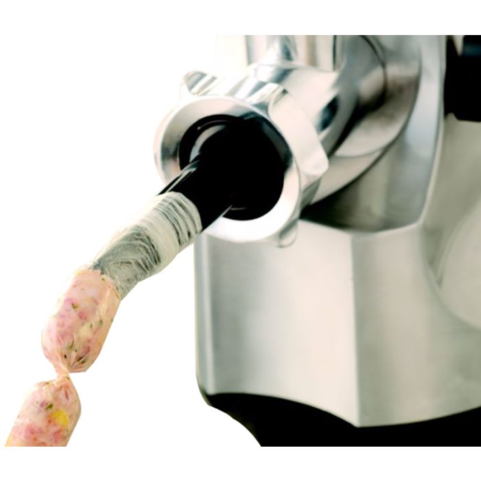 J'ai donc acheté ce produit, il va parfaitement pour le broyage des viandes la puissance est parfaite à condition de bien couper en lamelles pas trop large comme indiquée dans la notice d'utilisation, seul bémol pour l'embossage, la plaque en plastique noire qui à mon sens n'est pas faîte pour ça. Pour fabriquer la saucisse de porc on peut l'enlever, ça évite que celle-ci bourre avec des petits nerfs ou grains de viande qui se bloquent. Obligé de tout démonter pour dégager et remonter.