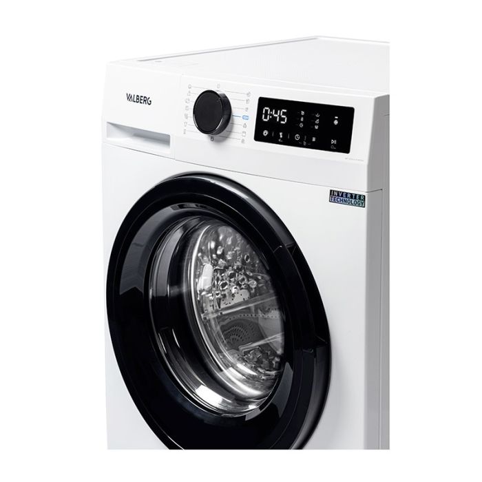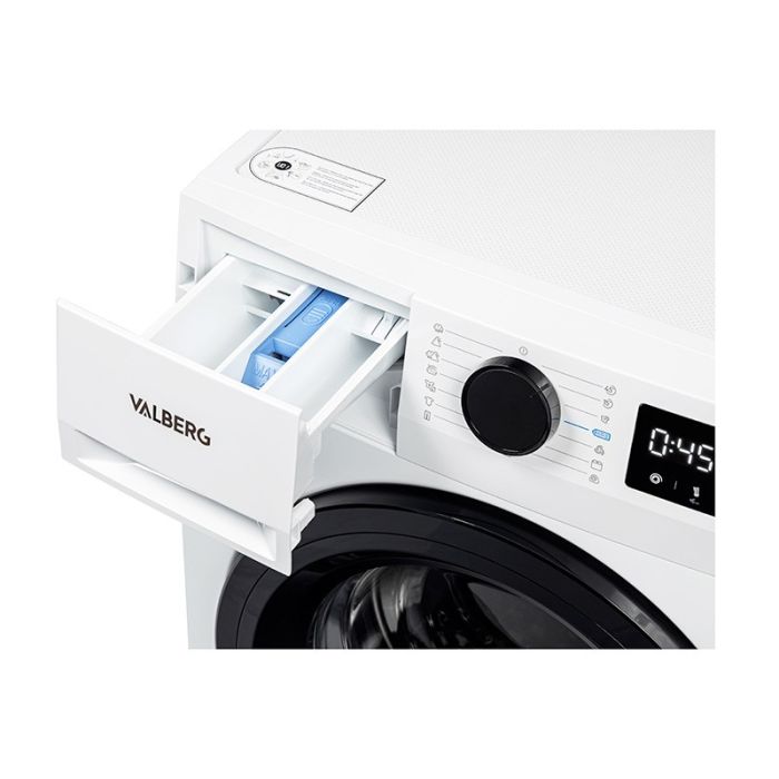 Le volume du tambour est de 64L. Vous pourrez laver facilement une couette de 140×200 cm.Nos machines à laver VALBERG vous offrent un large choix de programmes.