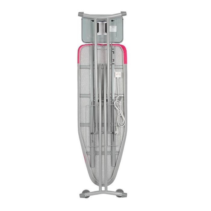 | Caractéristiques complémentaires | Table à repasser pour usage fréquent - Plateau repose centrale vapeur - Porte cintres - Housse de première monte en 300 gr/mm² - Déplacement facilité grâce aux deux roulettes - Rallonge électrique 2m50 - Hauteur réglable de 60 à 90 cm |