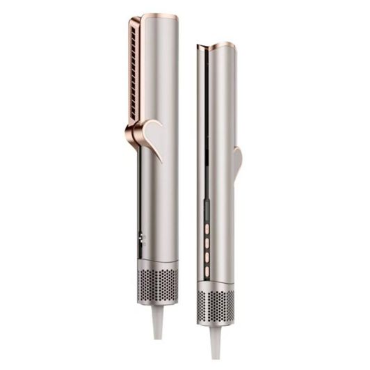 | Caractéristiques complémentaires | Révolutionnaire ! Le Liss'air 2en1 vous permet de vous sécher les cheveux tout en les lissant ! A la fois sèche-cheveux et lisseur, il vous offre un lissage sans abîmer les cheveux, qui ne sont pas en contact direct avec les plaques. Le moteur puissant BLDC vous assure un résultat rapide et efficace ! * 2 vitesses * Fonction ionique anti frisottis * Fonction de refroidissement * Différentes températures : 25-80-120-140-160°C * Affichage LED * Arrêt automatique après 30min |
