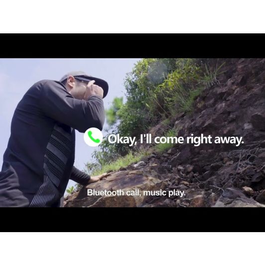 Les lunettes intègrent un système audio diffuse un son stéréo 3D immersif tout en laissant l’utilisateur attentif à son environnement. Les appels bénéficient d’une double réduction de bruit grâce à des micros intégrés, garantissant une voix claire même en milieu bruyant.