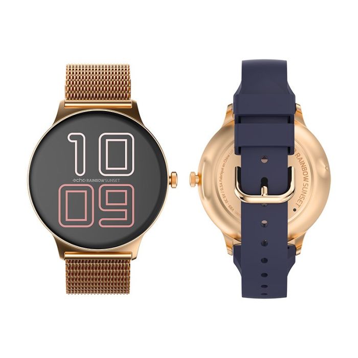 Montre connectée ECHO Rainbow Sunset bleu - Or rose - 2 bracelets
