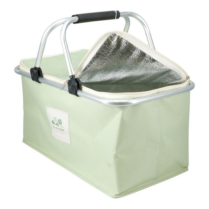 | Caractéristiques complémentaires | Panier pliable isotherme, contenance 35 L Dimensions 48x28x24 cm Tissus : polyester 600D Cadre et poignées en aluminium 3 couleurs assorties au choix en magasin : Jaune, vert ou rose Coloris aléaoire si achat ou commande en ligne Pour optimiser la tenue du froid, nous vous conseillons d'ajouter des pains de glace |