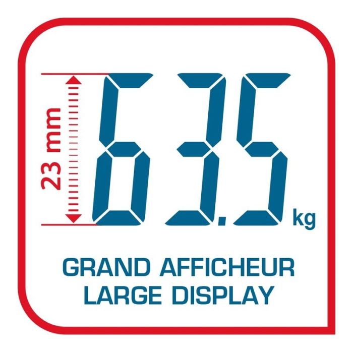 | Caractéristiques complémentaires | PÈSE-PERSONNE TEFAL ESSENTIAL (PP1300V0) Un pèse-personne électronique simple, pratique et élégant Design Ultra-plat : Affiche un profil mince de seulement 22 mm de hauteur pour s'adapter à tous les intérieurs. Haute Capacité : Conçu pour supporter une charge maximale allant jusqu'à 150 kg. Précision du suivi : Offre une graduation de 100 g pour une mesure précise de la masse corporelle. Lisibilité Optimale : Doté d'un grand écran LCD avec des chiffres d'une hauteur de 23 mm pour faciliter la lecture. Fonctions Intelligentes : Dispose d'une mise en marche automatique dès que vous montez sur le plateau et d'un arrêt automatique après 5 secondes d'inactivité. Confort et Hygiène : Plateau large en verre trempé de 28 x 28 cm, à la fois confortable et facile à nettoyer. Prêt à l'Emploi : Fourni avec deux piles LR03 AAA incluses pour permettre une utilisation immédiate dès le déballage. Spécifications Physiques : Appareil léger pesant 1,2 kg (produit nu) pour un encombrement réduit. Garantie et Origine : Fabriqué en Chine et bénéficiant d'une garantie constructeur de 2 ans. |