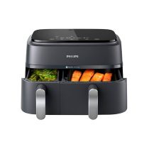 Découvrez nos friteuses de capacités allant de 0,5 kg à 2 kg pour les grandes tablées ! Certaines friteuses fonctionnent sans huile et sont dotées d'une régulation intelligente de la température, d'un flux d'air à haute vitesse et d’une pale de brassage pour une croustillance inégalée. La pale de brassage retourne automatiquement vos frites, vous n’avez pas besoin de surveiller la cuisson ! Pour une grande quantité de frites, optez pour une friteuse à deux cuves de 3 litres chacune. Dotées d’un thermostat réglable, elles vous permettent de faire cuire vos frites de manière parfaite et d’en servir environ 8 portions en une cuisson.