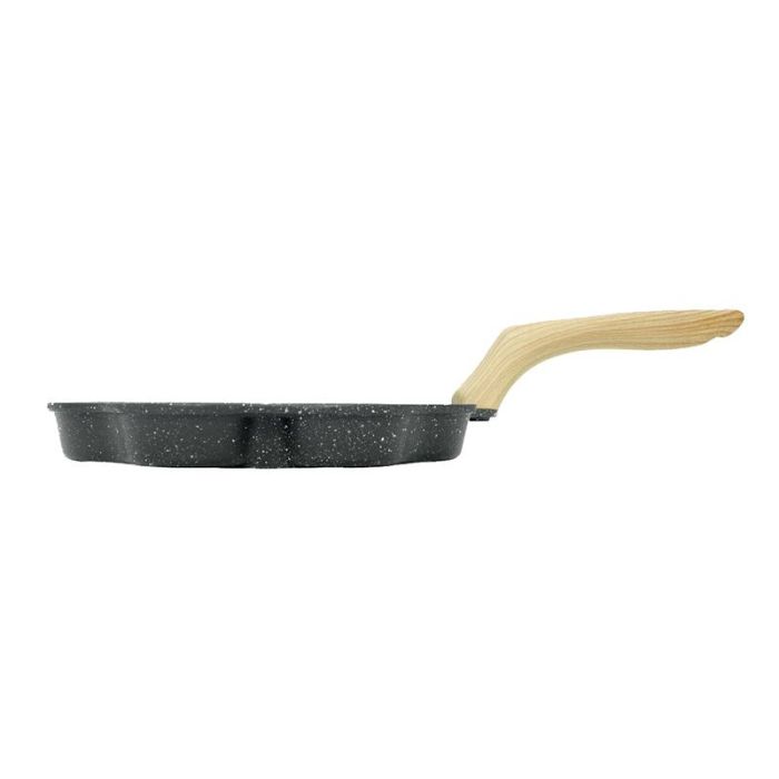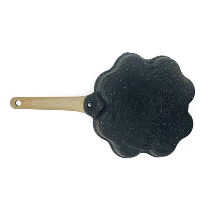 | Caractéristiques complémentaires | Cette poêle dotée de 4 cavités en forme de coeurs sera parfaite pour cuire toutes sortes de préparation simultanément (pancakes, blinis, oeufs, viandes...) et ainsi varier les plaisir tout en gagnant du temps. La poêle convient pour tout type de feu. Grâce à sa fonte en aluminium, la chaleur se diffuse bien, les aliments ne collent pas ce qui permet un nettoyage facile Poignée revêtue silicone effet bois Diamètre des cavités : 8 cm |