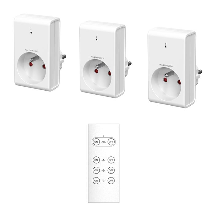 | Caractéristiques complémentaires | 3 prises télécommandées 2300w + télécommande sans fil |