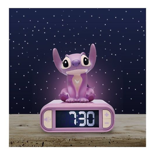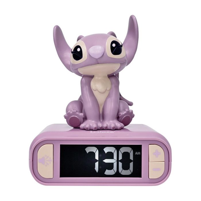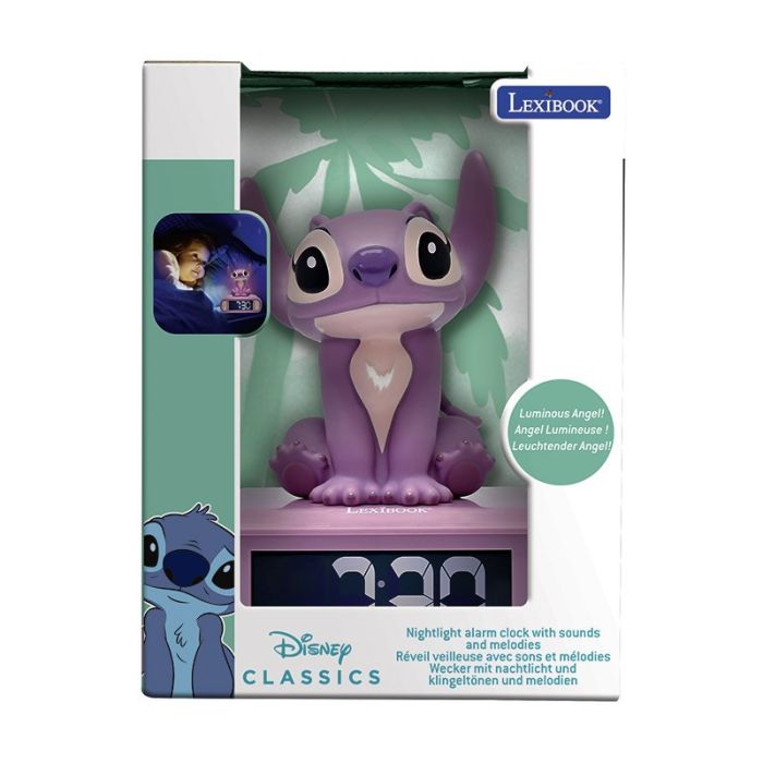 | Caractéristiques complémentaires | Possibilité d'éteindre ou de laisser alumer l'écran LCD pendant la nuit. Ecran LCD avec rétro éclairage temporaire. Bouton pour déclencher les effets sonores! Réveil avec volume réglable et choix de sonneries inspirées de l'univers de Stitch. Appuyez sur le haut du réveil ou sur Stitch pour éteindre l'alarme. Fonction retardateur d'alarme. |