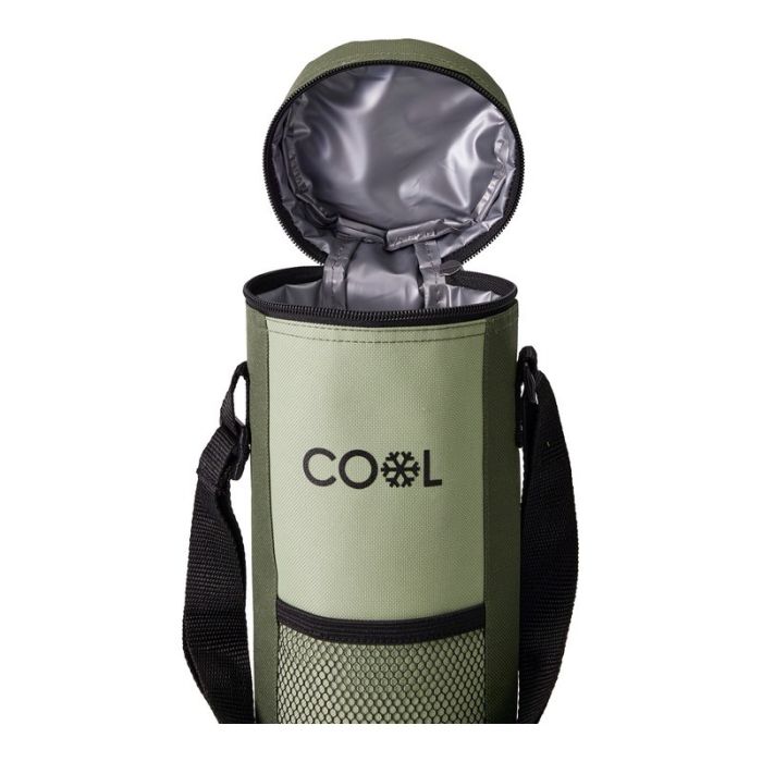| Caractéristiques complémentaires | Sac isotherme pour bouteille d'une contenance de 1,5 L max. Hauteur 32 cm Diamètre 12 cm Tissus Polyester oxford 600D Intérieur mousse PE 3MM, Doublure PEVA gris Poche principale avec fermeture éclair, poche avant en filet Bandoulière réglable, Sangle en polyester noir 3 couleurs au choix en magasin : Vert, Kaki ou gris. Aléatoire si achat en ligne. |