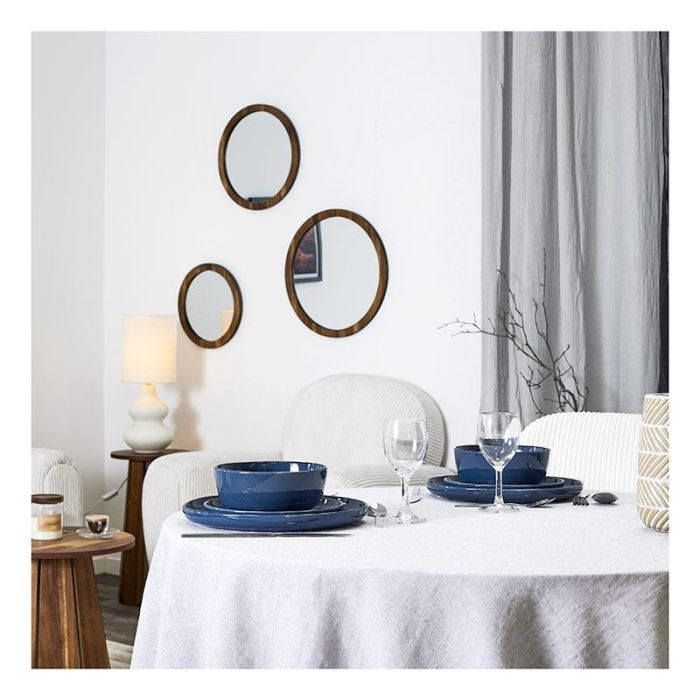 Informations complémentaires | Service vaisselle 12 pièces : 4 x assiettes plates Diam. 27,3 x H. 2,6 cm 4 x assiettes à dessert Diam. 20,5 x H. 2 cm 4 x bols de 60 cl Diam. 16,5 x H. 6,6 cm Matière : 100% Grès Compatibles : Lave-vaisselle, micro-ondes |