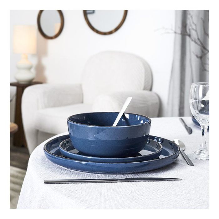 Service à vaisselle 12 pièces grès bleu