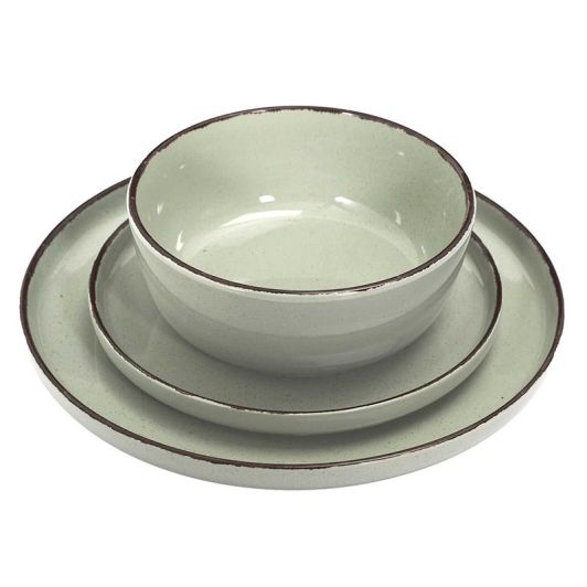 | Caractéristiques complémentaires | Service vaisselle 12 pièces en céramique grès 4 assiettes plates 27.3 x 2.6 cm 4 assiettes dessert 20.5 x 2 cm 4 bols 600 ml 16.5 x 6.6 cm Compatible lave vaisselle et micro ondes |
