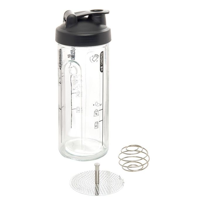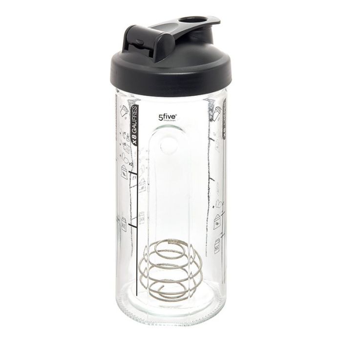 | Caractéristiques complémentaires | Shaker en verre pour préparation pâte à crêpes, gaufres Graduations et recettes indiquées sur verre Contenance 800 ml Boule métallique de melange |