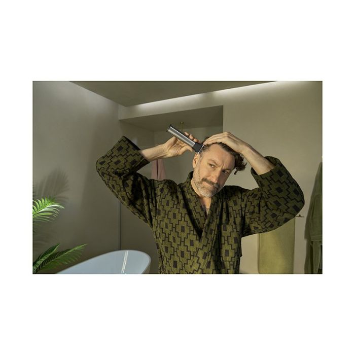 | Caractéristiques complémentaires | Tondeuse All-in-One Trimmer 7000 Series (MG7941/15) Polyvalence 17-en-1 : Un seul outil avec 17 accessoires de qualité pour la coupe et la stylisation du visage, des cheveux et du corps, répondant à tous vos besoins, de la tête aux pieds. Technologie BeardSense : La tondeuse analyse la densité de la barbe 125 fois par seconde et ajuste automatiquement la puissance pour garantir des performances optimales, même pour les barbes les plus difficiles à entretenir. Lames Durables et Précises : Les lames en acier auto-affûtées restent aussi tranchantes qu'au premier jour, offrant une résistance accrue pour une précision maximale, sans nécessiter d'huile. Sabot de Précision Premium : Permet une précision maximale avec 11 hauteurs de coupe entre 1 et 3 mm, par pas précis allant jusqu'à 0,2 mm de précision. Multi-sabot Polyvalent : Offre 22 hauteurs de coupe comprises entre 0,5 mm et 16 mm, par pas de 0,2 mm de précision, idéal pour les barbes courtes ou longues. Coupe Cheveux Rapide : La tondeuse extra-large de 41 mm en acier inoxydable coupe plus de cheveux à chaque passage, permettant un gain de temps allant jusqu'à 30 %. Autonomie Longue Durée : La batterie au lithium offre jusqu'à 120 minutes d'autonomie et dispose d'une option de charge rapide de 5 minutes pour une utilisation continue et puissante. 100% Étanche (Wet & Dry) : La tondeuse est entièrement étanche, permettant une utilisation pratique sur peau sèche ou humide (y compris sous la douche) et un nettoyage facile. Confort et Contrôle : Dotée d'un manche ergonomique premium pour une prise en main facile, elle assure un confort optimal et une maîtrise totale pendant la coupe. Elle est également dotée de bords arrondis doux pour la peau pour un entretien confortable du corps, même sur les zones sensibles. Accessoires Inclus : Livrée avec 17 accessoires, dont une brossette de nettoyage et une housse simple pour le voyage et le rangement. |
