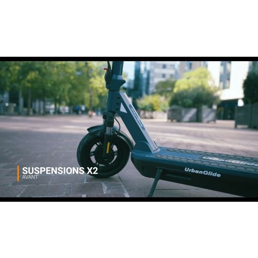 Cette trottinette est munie d'une suspension avant et arrière10'' pouces