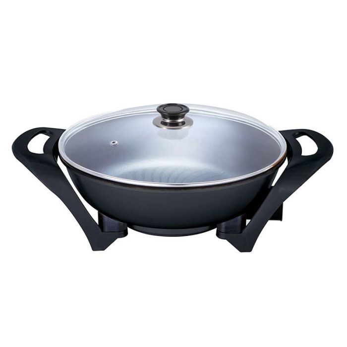 | Caractéristiques complémentaires | Vous aimez cuisiner rapidement, sainement et avec saveur ? Le wok électrique 33cm est l'allié idéal pour des repas variés, gourmands et équilibrés. Parfait pour sauter, mijoter, frire ou même cuire à la vapeur. Grande capacité : Idéal pour préparer des plats pour toute la famille. Cuisson rapide et homogène : Puissance réglable pour une maîtrise parfaite de la température. Répartition uniforme de la chaleur pour des aliments saisis à la perfection. Cuisine saine et savoureuse : Une cuisson avec peu de matières grasses. Conservation des saveurs et des nutriments Entretien facile : Grâce à son revêtement antiadhesif : rien n'accroche, nettoyage facile. |
